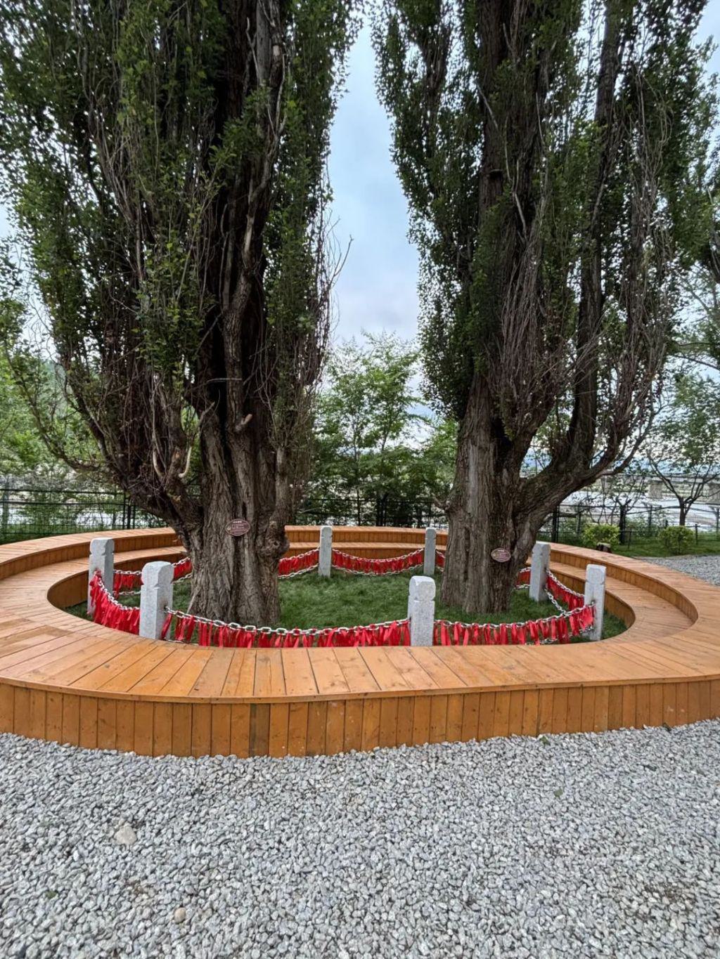 中心是两棵黄杨古树